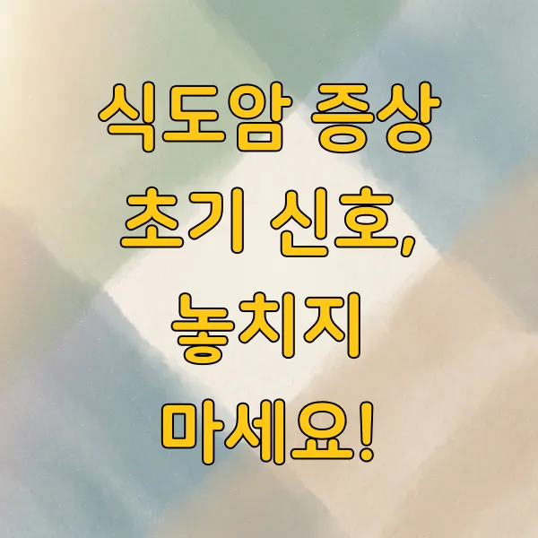식도암은 조기에 발견하면 치료율이 훨씬 높아집니다. 하지만 초기 증상이 다른 소화기 질환과 비슷하여 간과하기 쉬운데요, 오늘 이 글을 통해 식도암의 초기 신호들을 명확히 파악하고 건강을 지키는 데 도움받으시길 바랍니다.